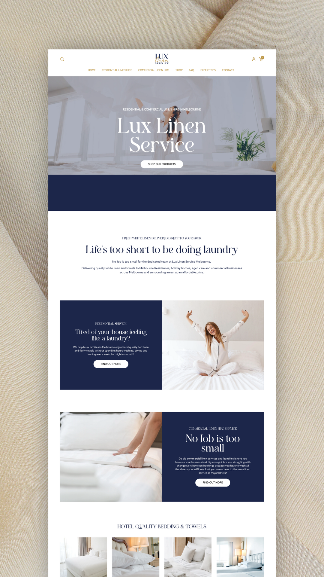 The Lux Linen website captures refined simplicity and everyday luxury, turning online browsing into a tactile experience.