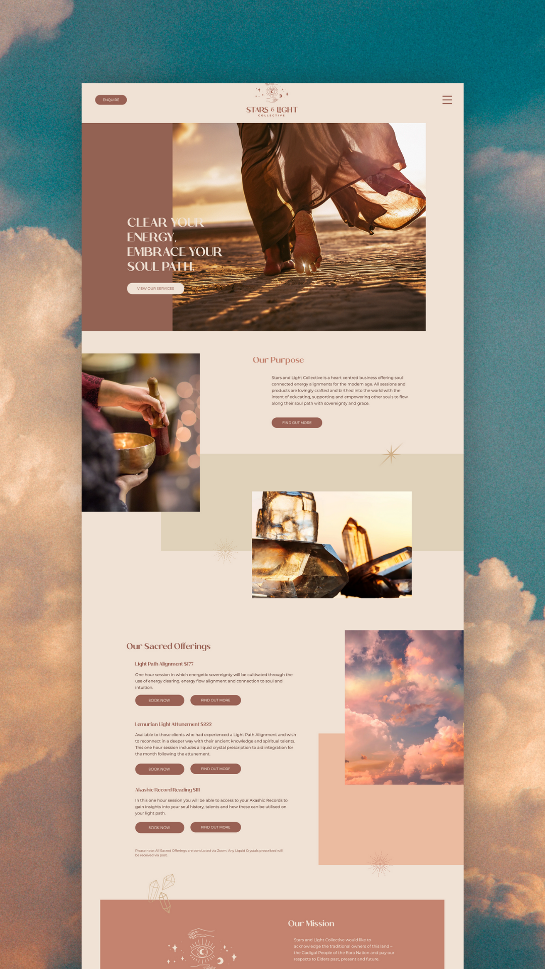 Flow Cre8tive partnered with Stars and Light Collective, a Sydney-based holistic coaching practice, to design a digital presence that reflects calm, trust, and authenticity. The goal was to create an inviting space for clients exploring energy healing and personal transformation — built to nurture connection from the first click.